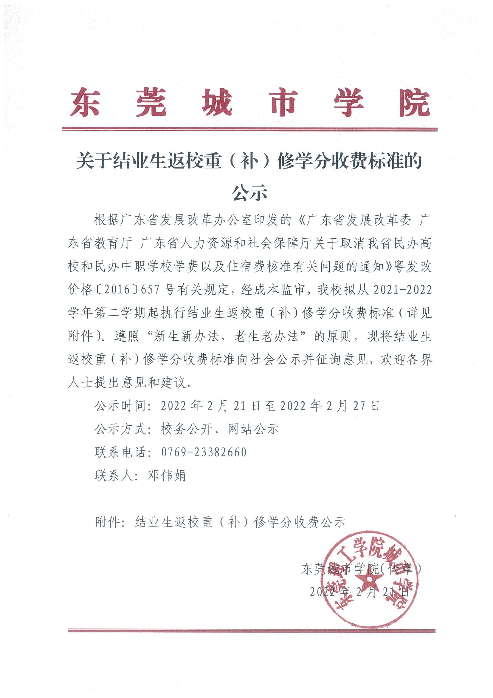 关于结业生返校重(补)修学分收费标准的公示.pdf