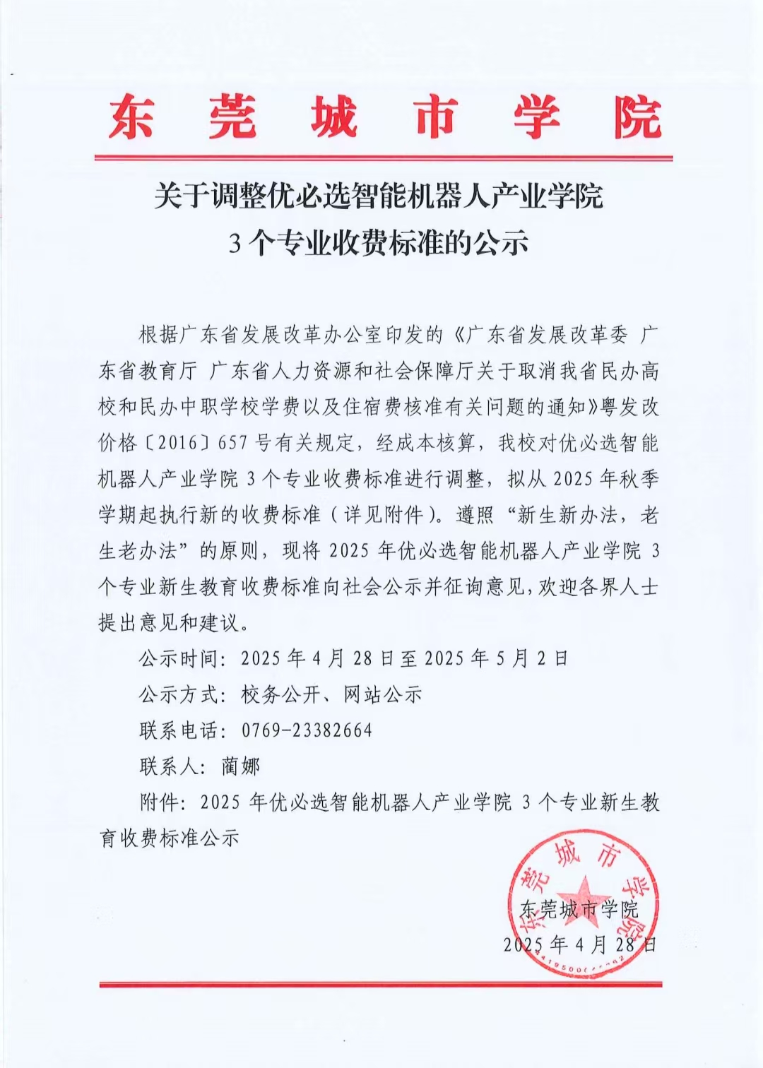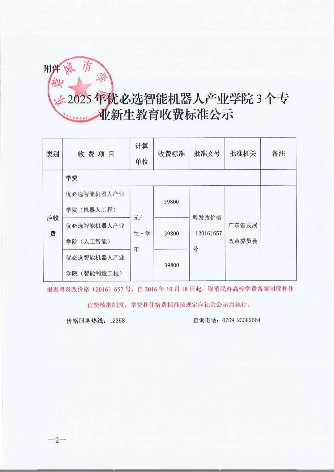 关于调整优必选智能机器人产业学院 3个专业收费标准的公示