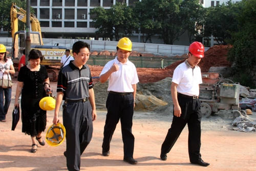 10月28日,东莞市城建工程管理局局长丁海潮在院长安少华、党委副书记朱冰及相关职能部门领导的陪同下,视察我院图书信息科技大楼建筑工地。 丁局长在施工现场听取了施工方负责人的情况汇报后表示,城建工程管理局非常重视城市学院