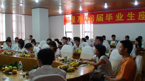 6月12日,管理系在4410举行了08届毕业生座谈会。系主任罗余才教授、系总支书记徐中和教授、系总支副书记吴春庚老师、系教师代表、全体辅导员以及08届的毕业生代表参加了座谈会。 座谈会上情意浓浓,气氛热烈。同学们一边品尝水果一