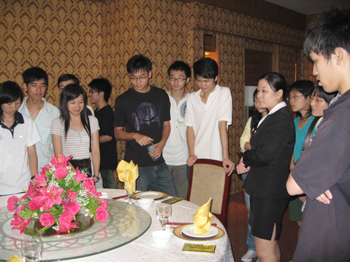 5月22日,管理系07级酒店管理专业一班共30名学生在吴雪梅老师的带领下赴东莞市尼罗河大酒店参观学习。 尼罗河大酒店是是管理系酒店管理专业学生的实习基地之一。同学们参观了酒店餐饮、娱乐、康体及客房等部门。参观的过程中,大家