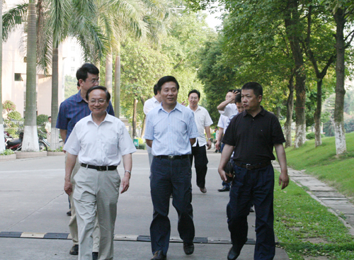 华中师范大学武汉传媒学院院长沈振煜教授、东莞理工学院软件学院院长覃征教授5月14日来我院参观访问。院领导安少华、朱志德、程发良、朱冰向客人介绍了我院创办的过程与发展的经历,并陪同客人参观了校园。