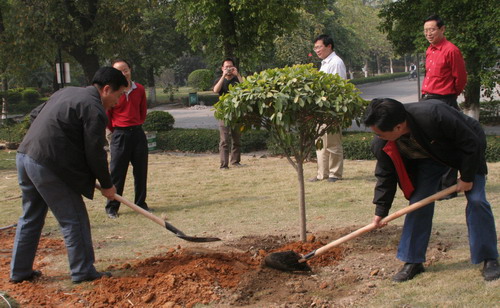 3月12日,学院领导安少华教授、朱志德副研究员、程发良教授,院督学林世俊教授参加植树节活动。 院领导在大礼堂旁边栽种了黄榕、罗汉松、玉堂春、平安树等观赏树。 学院部分机关干部也参加了植树活动。