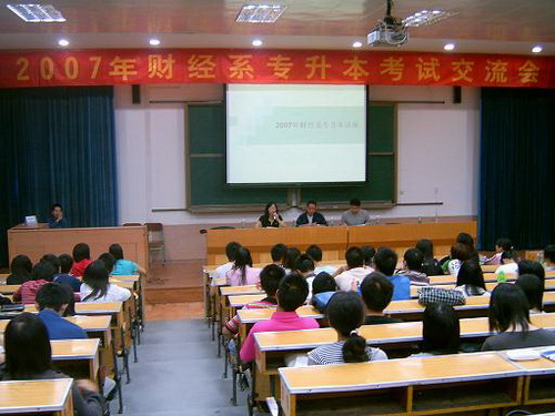 为了帮助学生树立“专升本”的信心,做好“专升本”考试前的准备工作,财经系于11月14日在5号楼阶梯教室召开“专升本”考试经验交流会。 今年上半年,该系有40多人参加“专升本”考试,有23名同学被录取,并有2名学生考取硕士研究生