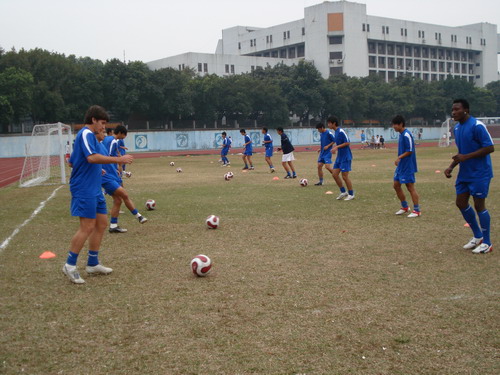 11月8日,香港甲级足球俱乐部联华红牛足球队,在总经理彭昌颖先生和副总经理胡志军先生的带领下到我院进行足球文化交流。 院足球协会的大学生球员陪同俱乐部成员参观了我院的校园环境后,双方在田径场切磋了球艺。香港专业球员的