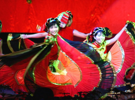 12月10日晚上,我院管理系在大礼堂举行2007年迎新年暨师生联欢晚会,以热情欢快的文艺节目,迎接新年的到来。院党委书记朱志德,党委副书记朱冰观看了晚会。 晚会节目精彩纷呈,欢快热烈,有同学们自编自演的歌舞剧《化妆舞会》