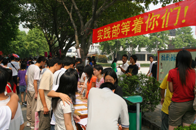 10月11日,在经过充分的准备之后,我院各学生社团开始举行招新、座谈等各项内容丰富的活动,校园充满着活跃的气氛。 学生在学好专业课的同时,还有许多兴趣爱好,如写作、摄影、导游、动漫制作、武术等,其中不少同学已具有相当