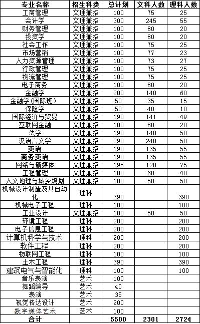 附:东莞理工学院城市学院2019年计划招生一览表