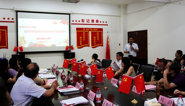 为深入开展“不忘初心、牢记使命”主题教育活动,金贸学院党总支书记赵书山进行了领学,作了“梦想从学习开始:金贸学院党总支着力打造学习型党组织”主题学习报告。他详细介绍了金贸学院党员干部深入学习贯彻习近平总书记关于学习的重要论述,通过学习经典原著、党群共读《共产党宣言》、开展“书记读书日”活动等举措,打造学习型党组织的经验和取得的成绩。