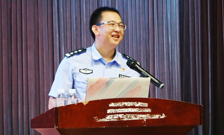 9月10日晚,2019级新生安全教育讲座开讲,寮步公安分局政委萧惠忠应邀主讲。