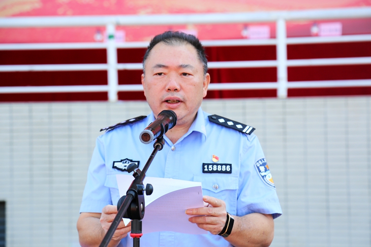 寮步公安分局局长叶浩钿作了动员讲话。