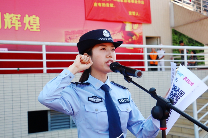 全体新生和教师代表在寮步公安分局周少玲警官带领下,一起宣读了“拒绝毒品从我做起”的禁毒誓词,表明了拒绝毒品的决心。庄严肃穆的宣誓词如同警钟一般响彻云霄,告诫每位学子创造美好生活从远离毒品开始。