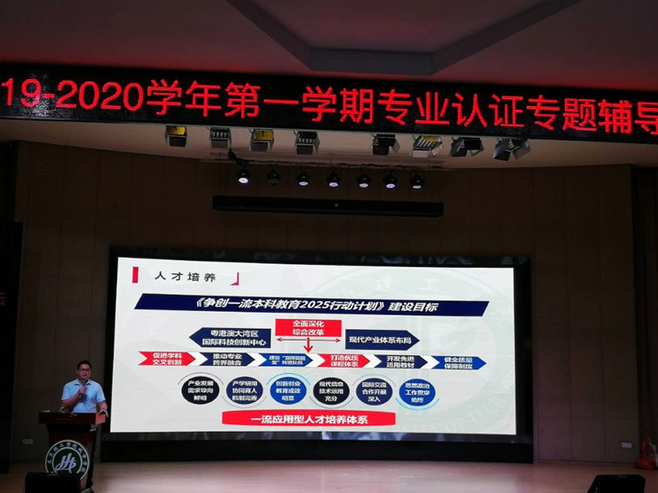 为推进beat365官网专业认证工作,10月10日下午,beat365官网邀请东莞理工学院教务处副处长廖文波博士作专业认证专题辅导讲座。校长王卫平、副校长高香林以及相关二级学院院长、副院长、教研室主任及教师参加了讲座。讲座由教务处处长赵书山主持。