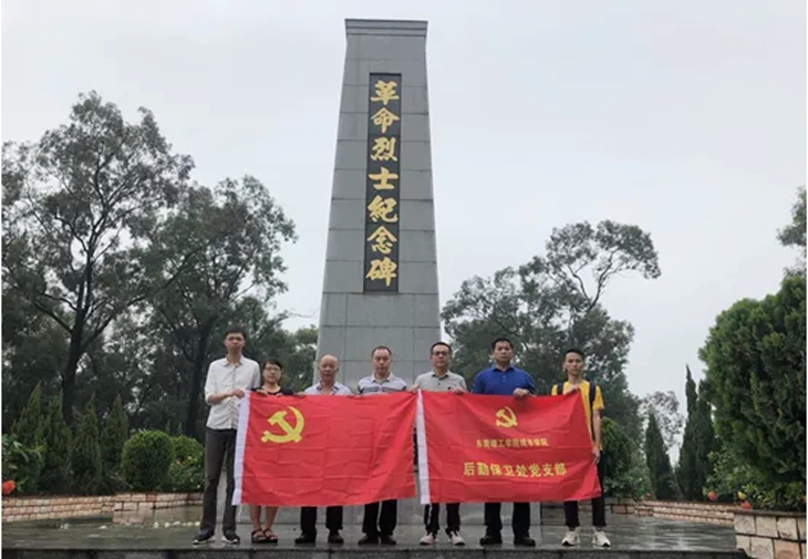 后勤保卫处党支部全体党员赴寮步镇浮竹山革命烈士纪念碑开展“不忘初心,牢记使命”革命传统主题教育活动。在纪念碑下,王锦锋书记带领全体党员同志学习了在中国共产党领导下革命先烈们在艰难曲折的反帝反封建的道路上勇于斗争的精神,指出全体党员同志学习革命先烈们这种为国牺牲、抛头颅、洒热血的崇高精神,坚持以习近平新时代中国特色社会主义思想为引领,要紧紧团结在以习近平同志为核心的党中央周围。