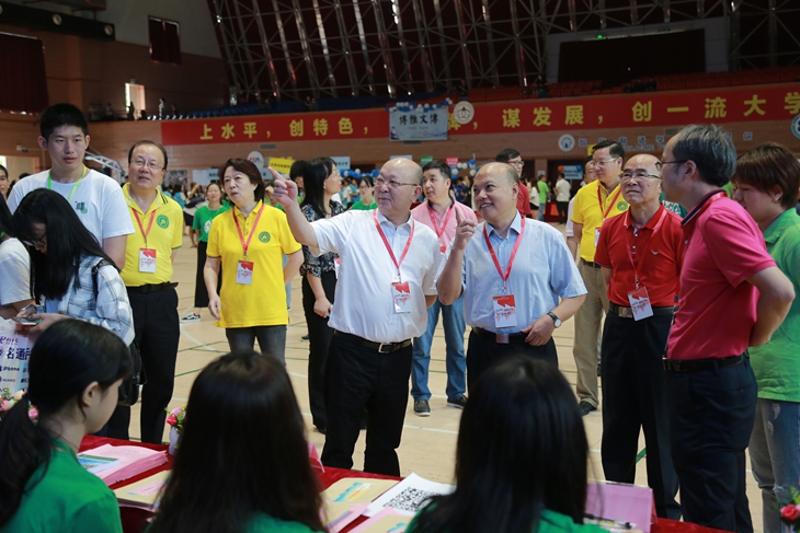 (学校董事长麦照容(右四)、东莞理工学院党委副书记吕琦元(右三)和校领导检查新生入学工作)