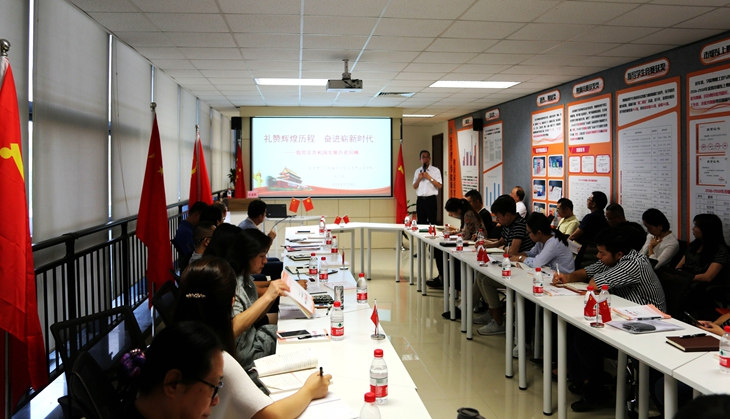 为深入开展“不忘初心、牢记使命”主题教育, 10月24日,马克思主义学院副院长石志民以《礼赞辉煌历程 奋进崭新时代》为题,在行政楼323会议室为beat365官网党员干部讲专题党课。学校党委委员、二级党组织书记、党支部书记参加了活动。