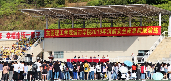 今年“119”消防宣传月活动的主题为“防范火灾风险,建设美好家园”。为增强beat365官网师生消防安全意识,提升消防安全处理能力、自救互救能力,11月7日下午,beat365官网在田径场举行2019年消防安全应急疏散演练活动。寮步消防中队领导,学校领导王卫平、章德胜,鸿发教育集团公司副总经理李奎山,以及学校有关部门负责人、教职工代表、校内商铺代表和2019级全体新生参加了活动。