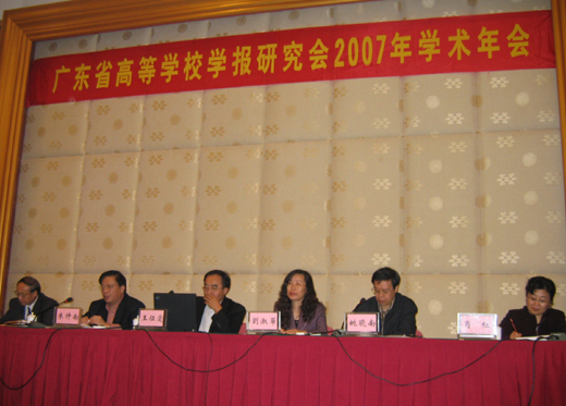 会议由研究会秘书长、广东省教育学院学报主编姚晓南主持。会议首先由研究会副会长王征爱作2007年研究会工作总结报告,广东省新闻出版局朱仲南副局长作大会报告。朱副局长在不报告中分析了广东省出版事业的特点、优势及其存在的问题。朱副局长表示,我们要珍惜高校的环境与氛围,遵循标志性原则和地域文化性原则,体现广东省学报的特色,牢记法律、纪律、规律,注意了解国情、省情、民情和社情,广交朋友等。会议对广东省高校学报审读工作做出了部署,成立了广东省高校学报研究会审读专家组。会议决定从明年开始,对全省高校的学报进行审读。此外,会议还公布了2007年优秀“编辑学”评奖结果。“编辑学”奖每两年评一次,此次共评出优秀著作奖6名,优秀论文一等奖3名,二等奖6名。