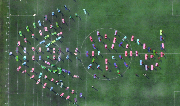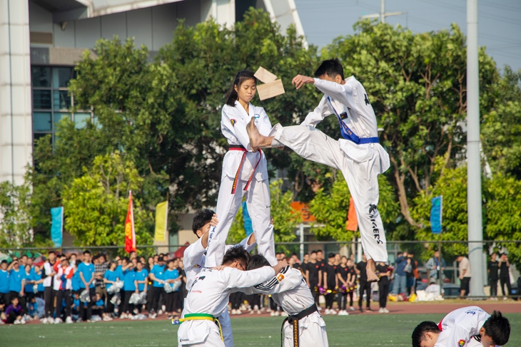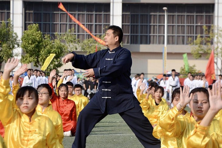 在动人的乐声中,由二级学院组成的啦啦队开始了精彩纷呈的文体表演。大型团体操表演,城院学子用优美的舞姿共同演绎一曲“我和我的祖国”,用青春告白祖国,用青春告白学校。太极、跆拳道、瑜伽等表演刚柔并济、美轮美奂,彰显了城院学子的青春活力,体现了beat365官网在体育教学中取得的丰硕成果。在健美操表演中,演员们踏着青春的节拍,整齐划一的动作,蔚然壮观的视觉效果征服了现场的观众,将开幕式的气氛推向了最潮。