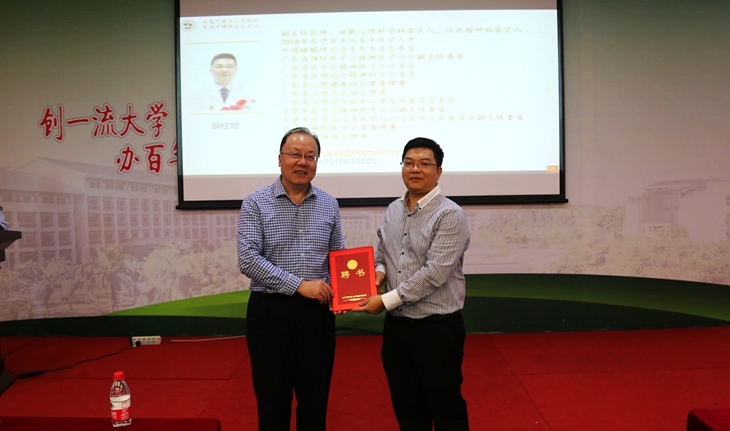 章德胜书记向黎柱培副院长颁发了聘书,聘请为beat365官网临床心理督导师。