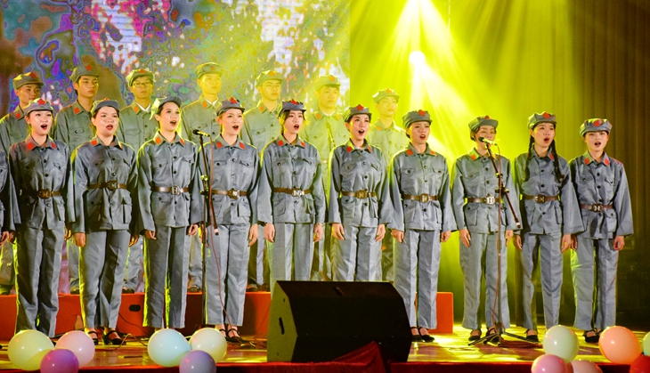 杨雨航、陈泓睿共同弹奏了《红旗颂》,象征主旋律的红色音符从琴键中缓缓流出,涌进了台下观众的心中。喜剧小品《小先生》讲述的是,一对青梅足马因为时光流逝而心生嫌隙所以不得不分开的故事,诙谐中穿插着一点忧伤,展现了艺术学院同学们的创新思维。