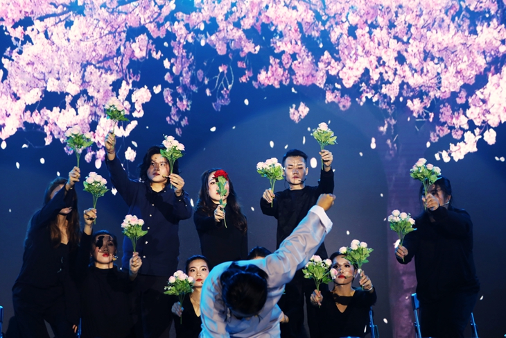 开场乐队的《开到茶靡》、《Creep》拉开序幕。余贵鑫、刘伶红带来的《哥哥不来花不开》,句句真情流露,旋律让人回味无穷。由周嘉嘉、杨洋、袁杞莹等同学合唱的歌曲《雪花的快乐》,纯洁、动听的歌声颂出了徐志摩诗歌中的自由。林海欣、张航、廖刘泳等同学用活泼的舞姿、青春的歌声演绎了《失恋阵线联盟》,将在场观众带回了群星闪耀的90年代,活泼灵动的曲调配上轻松欢快的舞蹈瞬间将现场气氛带至高潮。