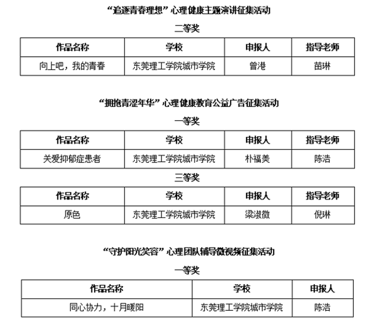 beat365官网精心组织师生积极参与申报,最终送选的作品在5个心理健康教育活动评选中均获佳绩。
