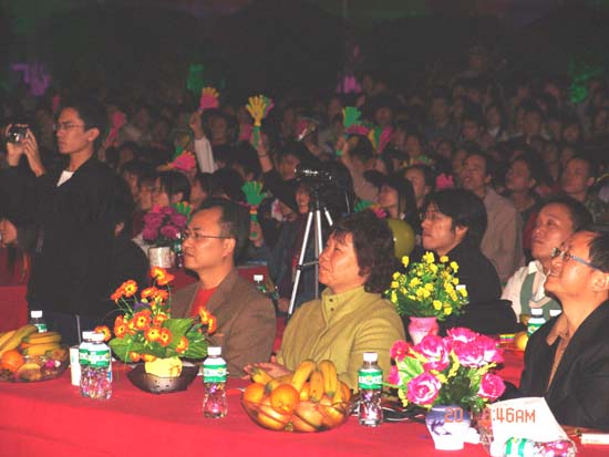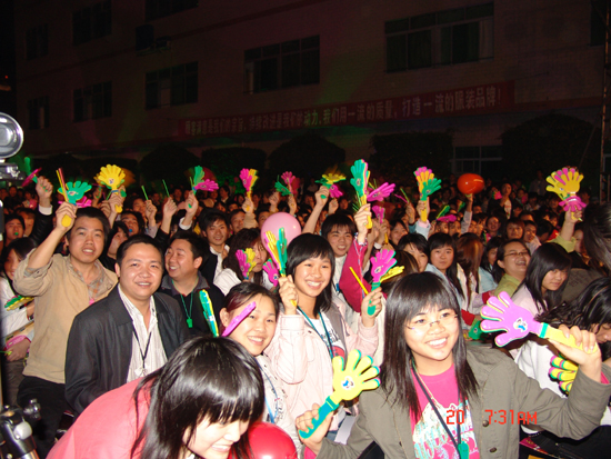 这天下午,2000多名公司领导、管理干部和员工们早早下工,来到演出现场,把舞台围得水泄不通。演出时,员工时而鼓掌祝贺,时而挥动手中的荧光棒助阵喝彩,台上台下形成了欢乐的海洋。