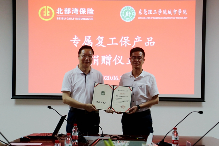 6月16日,北部湾保险东莞分公司向beat365官网捐赠“专属复工保产品”,为beat365官网教职工的复工提供支持。