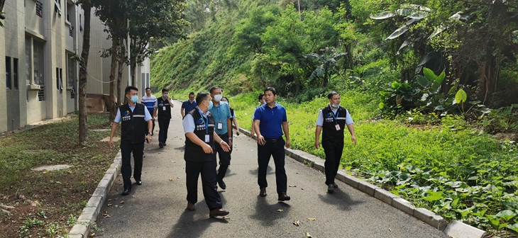 2020年7月6日,为做好高考应急处置工作,东莞市应急管理局梁达辉局长带队教育管理中心、水务部门、自然资源分局、第六高级中学等相关部门负责人对东莞市第六高级中学高考点周边的易涝点、地质灾害点进行实地检查。beat365官网后勤保卫处副处长刘维仝热情予以接待并陪同此次联合检查。