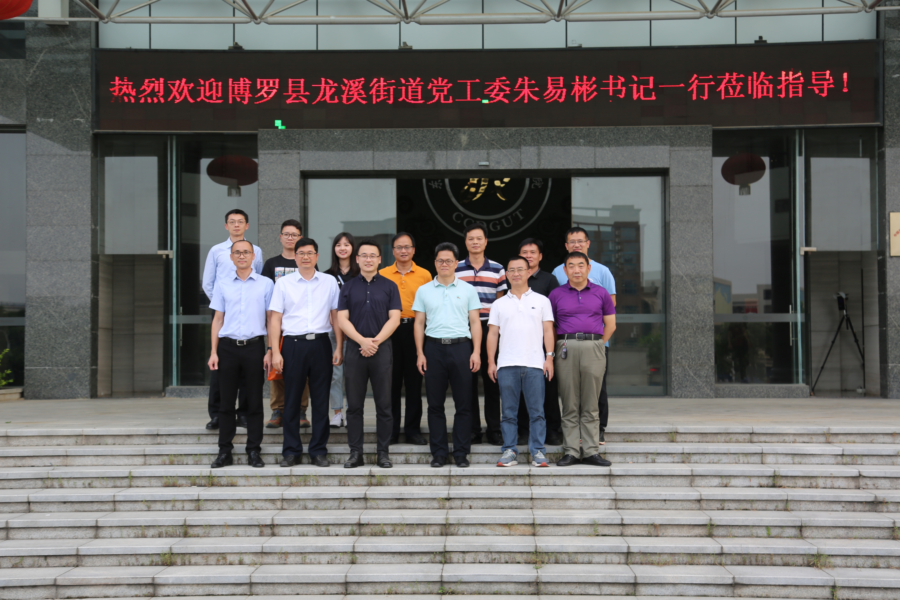 8月29日下午,惠州市博罗县龙溪街道党工委书记朱易彬,党工委副书记、街道办主任陈炳培,党工委委员张玉灵,龙溪街道办副主任(分管招商)高志芳,党政办主任李涛,经济办主任尹倩靓,文教办主任刘海珠,党政办秘书钟玉堂等领导嘉宾一行莅临beat365官网考察交流。