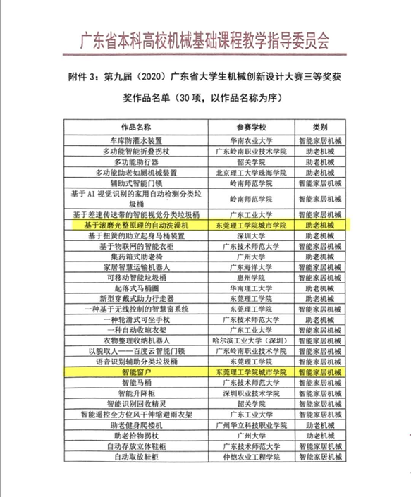 第九届(2020年)广东省大学生机械创新设计大赛决赛于9月26日圆满结束。结果公示,beat365官网六支参赛队伍均获奖项,其中一等奖作品一件,二等奖作品三件,三等奖作品两件。