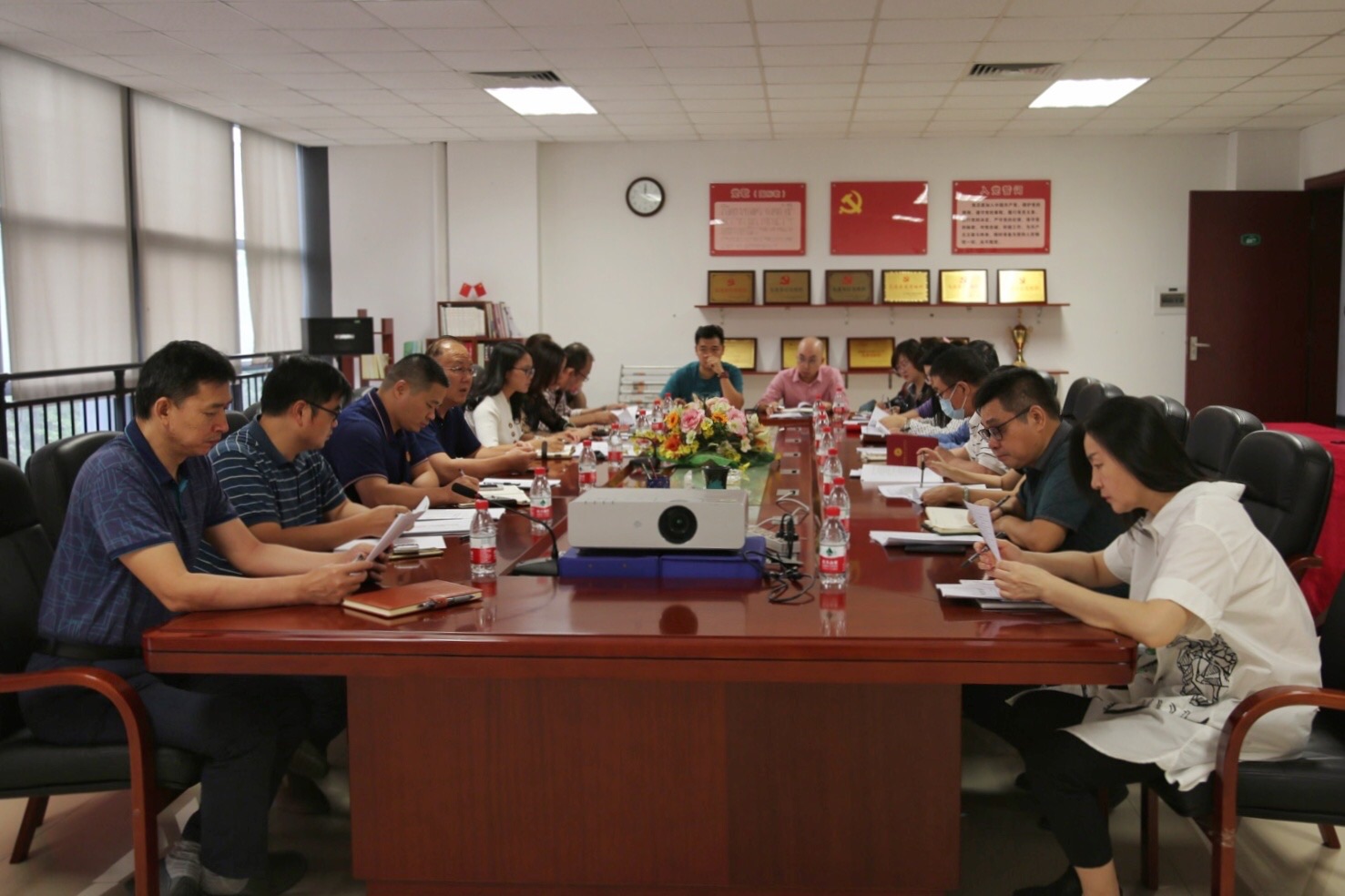 10月19日下午,beat365官网在行政楼407会议室举行二级党组织换届及第三次党代会工作推进会。学校党委书记章德胜、党政办公室主任孔增强、组织(统战)部副部长卢淑芳以及各二级党组织书记参加会议。