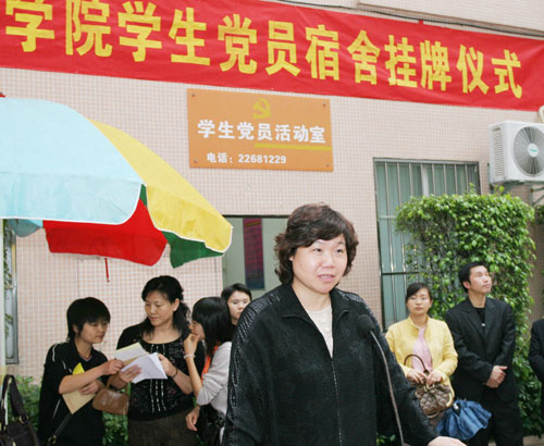 3月18日,学院在学生党员活动室前坪举行学生党员宿舍挂牌仪式。学院党委副书记朱冰,党委委员、学院办公室主任王玉,团委书记丘永辉,各系部党总支副书记和220名学生党员代表参加了仪式。仪式由王玉主任主持。