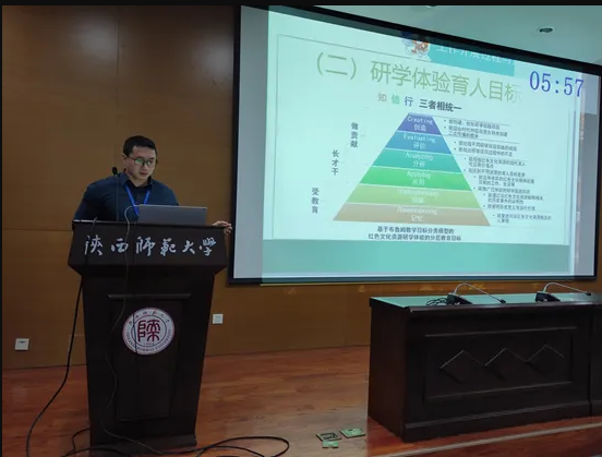 21日,张宏渝老师在研修班上代表工作室建设对象做文化育人校园文化活动指导工作室报告,陈浩华老师代表工作室培育对象做基于地域红色文化资源的体验育人工作室报告。