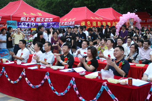 和我们常在电视上见到的拍卖场面一样,竞投现场异常火爆。百余名师生集聚一堂,投标声此起彼伏,为自己心仪中的摊位不断亮牌出价。经过激烈的竞争,所有铺位全部竞投一空,最低价的摊位也要160元。