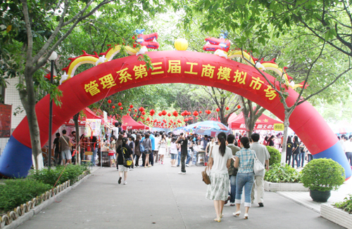 为了更好地使理论与实践相结合,让学生在做生意中学到知识,管理系专门开办了营销“老板”培训班,邀请专业老师给同学们进行营销技术讲座,使“老板”了解和熟悉工商模拟市场营销谋略和核算成本。
