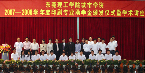 助学金出资单位海德堡有限(深圳)公司谭浩辉总经理,亲临会场为同学们颁发了助学金,并欣然接受了城市学院客座教授的聘请。颁发仪式后,谭浩辉教授作了题为《以全球化的视野培养印刷人才》的学术报告。他说,印刷业是一个很有发展前途的朝阳产业、高科技产业,同学们选择印刷专业学习是明智之举。目前中国已成为世界上第三大印刷国,全国有印刷企业近万家, 360万从业人员,而从事印刷教育的学院只有100所,每年毕业生不到5000人,远远满足不了印刷人才的需求。印刷业正在由劳动密集型向高科技型转变。希望同学们不仅要有专业知识,至少还要懂得两国语言,努力使自己成为研究型、应用型、技能型的印刷人才。
