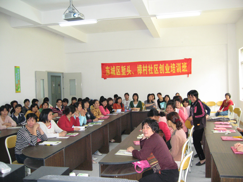 4月24日,由东莞理工学院城市学院牵头、东莞市劳动局和东城区樟村、堑头社区共同协办的村民“创业培训班”开班。