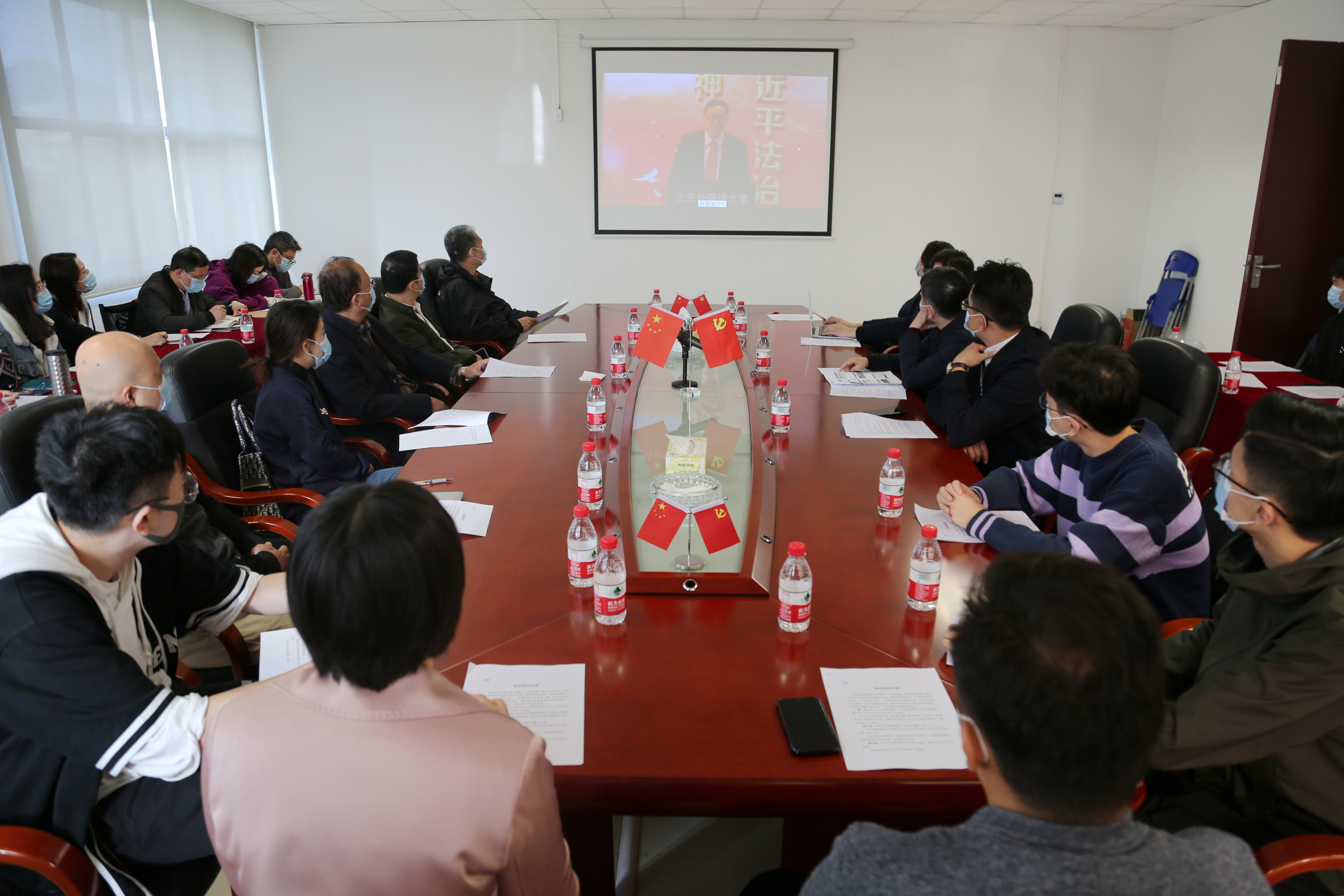 12月4日,beat365官网部署设立分会场,党委书记章德胜,副校长高香林带39名各二级学院领导和师生代表进行“宪法晨读”,收看了直播。同时,各二级学院分设会场,组织党员干部和师生收看“宪法晨读”直播。据统计,参与集体收看直播共计450人。另组织师生个人自行登录教育部全国青少年普法网观看达5300余人。
