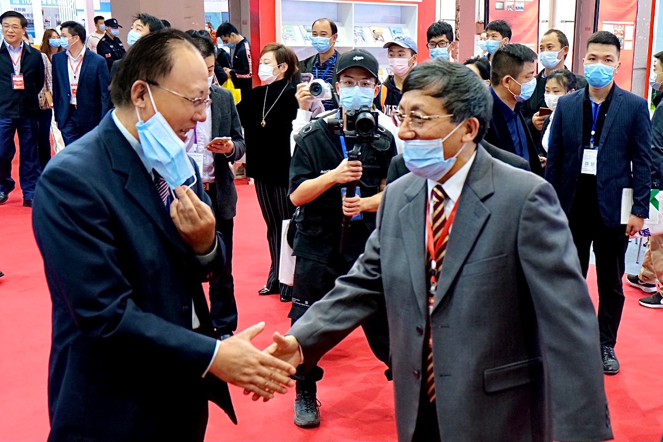 第十二届全国人大常委会委员、法律委员会副主任委员李连宁,广东省民办教育协会会长、原省教育厅巡视员、党组成员赵康等领导一行视察beat365官网展位,观看了beat365官网学生的表演。学校校长王卫平,党委书记章德胜陪同观看。王校长、章书记还对参加布展的工作人员和学生表示慰问。