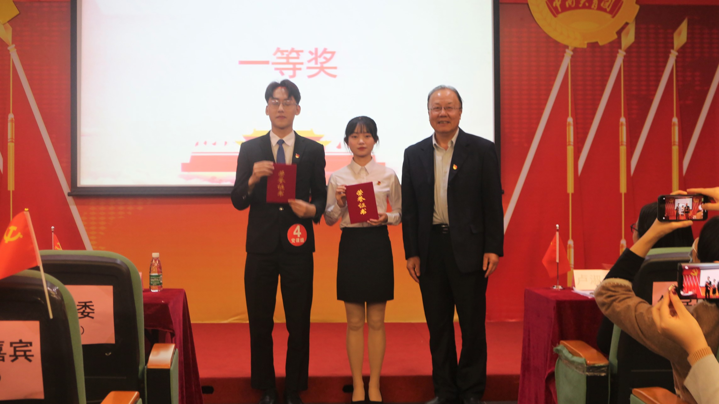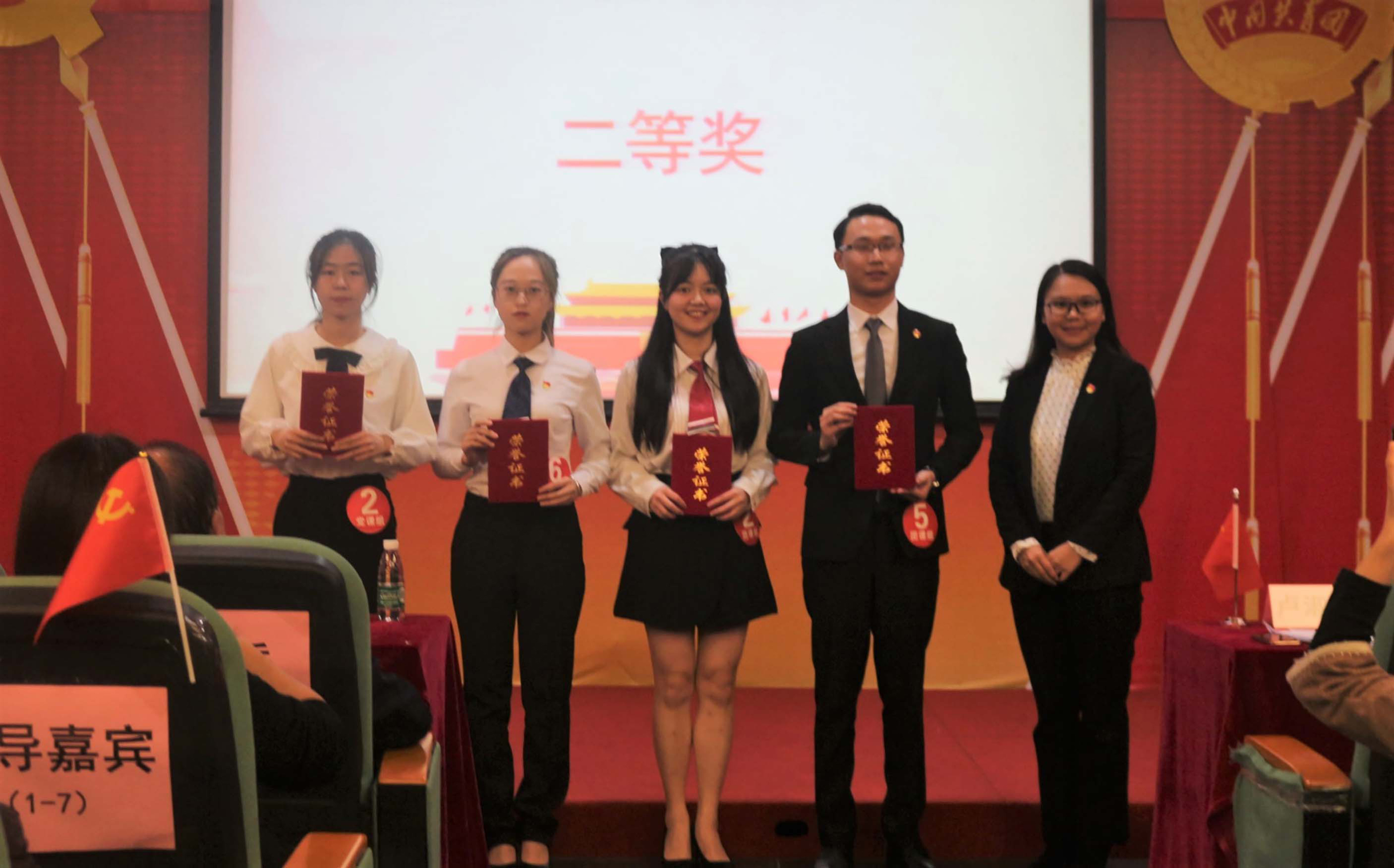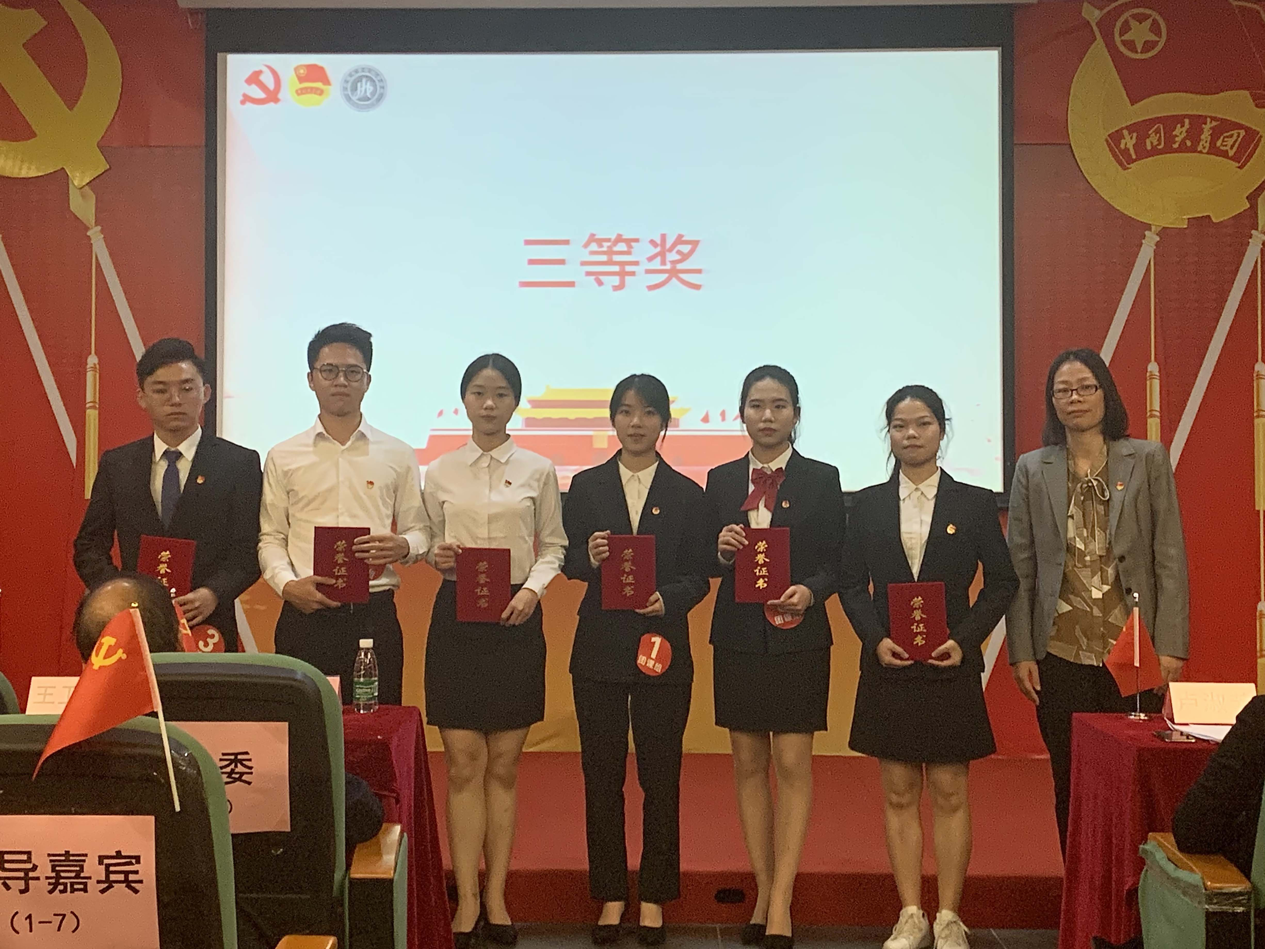 来自法学院的范智派和文学与传媒学院的黄馨怡分别斩获党课组和团课组一等奖,来自外国语学院的张美琪等4名同学荣获二等奖,金融与贸易学院的赵颖聪等6名同学荣获三等奖。