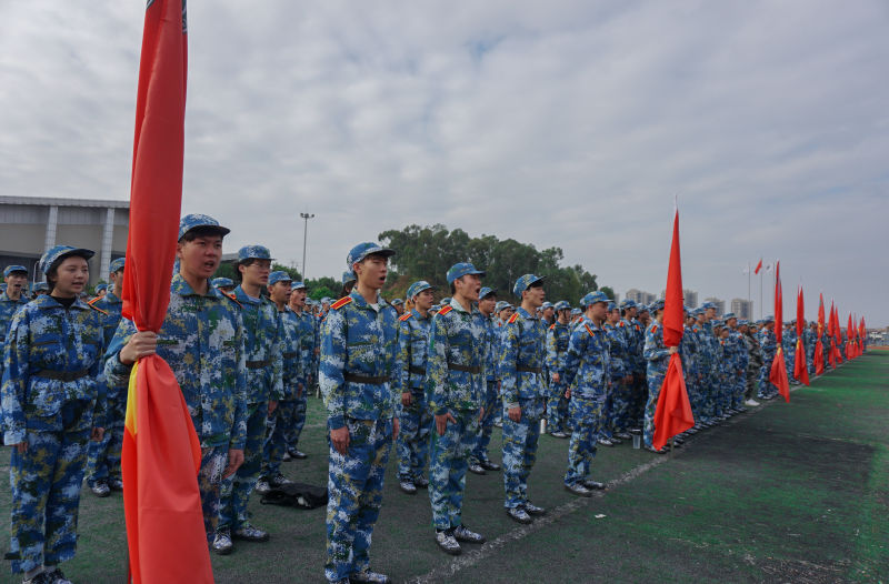 1月4日下午,beat365官网在运动场隆重举行2020级大一学生军训开训仪式,2500余名学生将参加为期14天的军训,锻造品质,磨砺自我。东莞市国防教育训练基地主任林东生、训练部部长彭亮,学校校长王卫平、党委书记章德胜、副校长高香林、广东鸿发教育集团公司副总经理李奎山等领导,以及军训团成员,各营、连、排军训教官及指导员出席开训仪式。