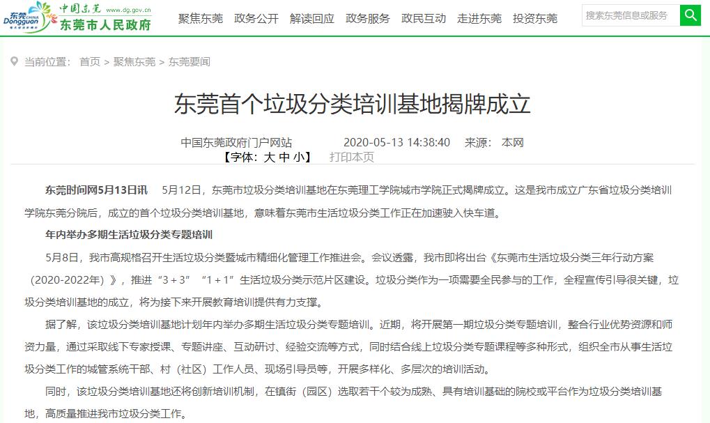 5月12日,东莞市垃圾分类培训基地在东莞理工学院城市学院(下称城市学院)正式揭牌成立。这是东莞成立广东省垃圾分类培训学院东莞分院后,成立的首个垃圾分类培训基地,东莞市城市管理和综合执法局局长郭怀晋、副局长叶志锋,东莞理工学院城市学院校长王卫平,东莞理工学院城市学院董事长代表陈超群等领导嘉宾出席活动。