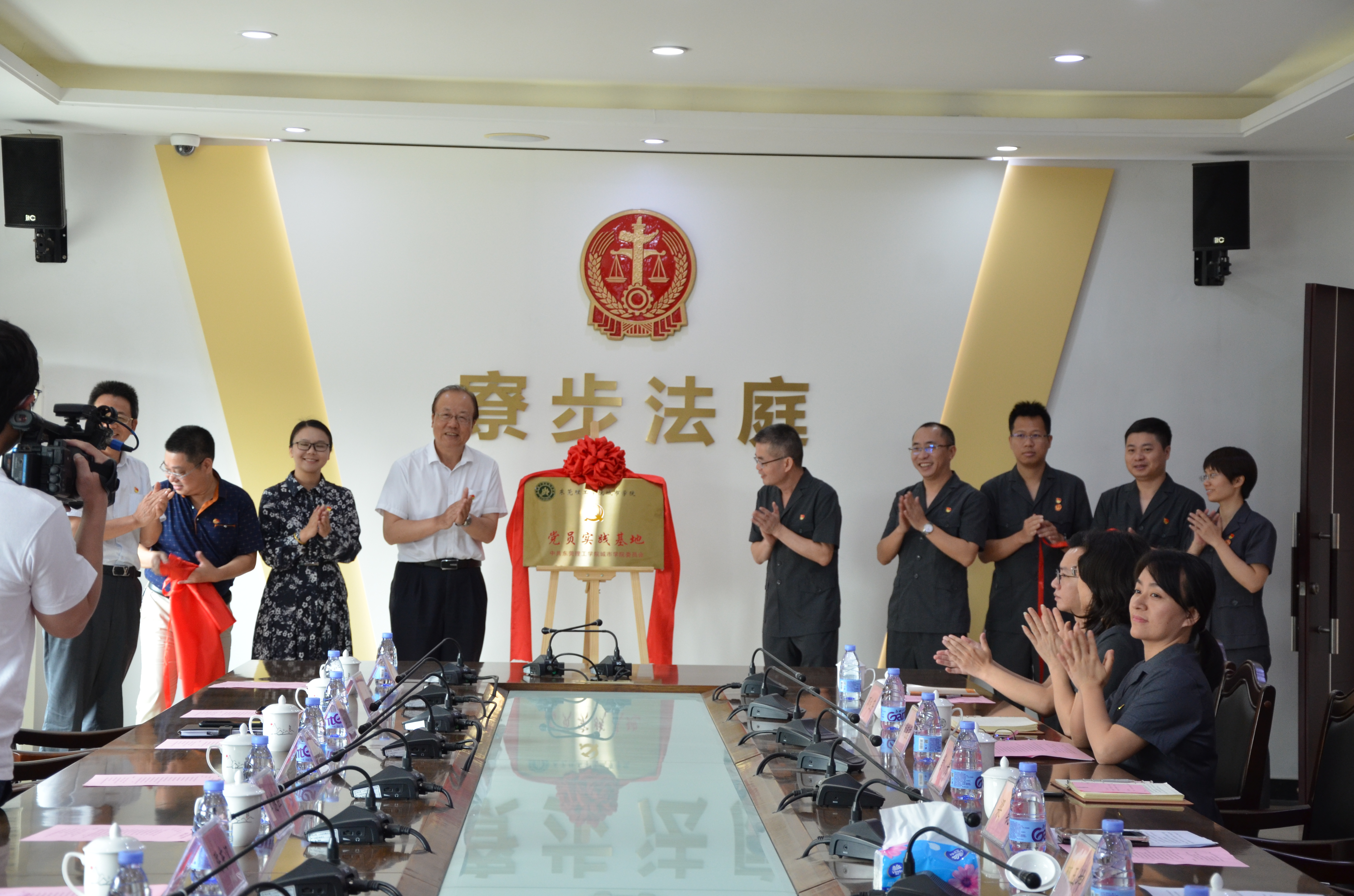 4月2日上午,beat365官网在寮步人民法庭举行党员实践基地挂牌仪式,东莞市第一人民法院党组成员、副院长梁聪,寮步人民法庭党支部书记、庭长林玉坤,beat365官网党委书记章德胜、党委委员、组织(统战)部部长卢淑芳等领导出席了挂牌仪式。