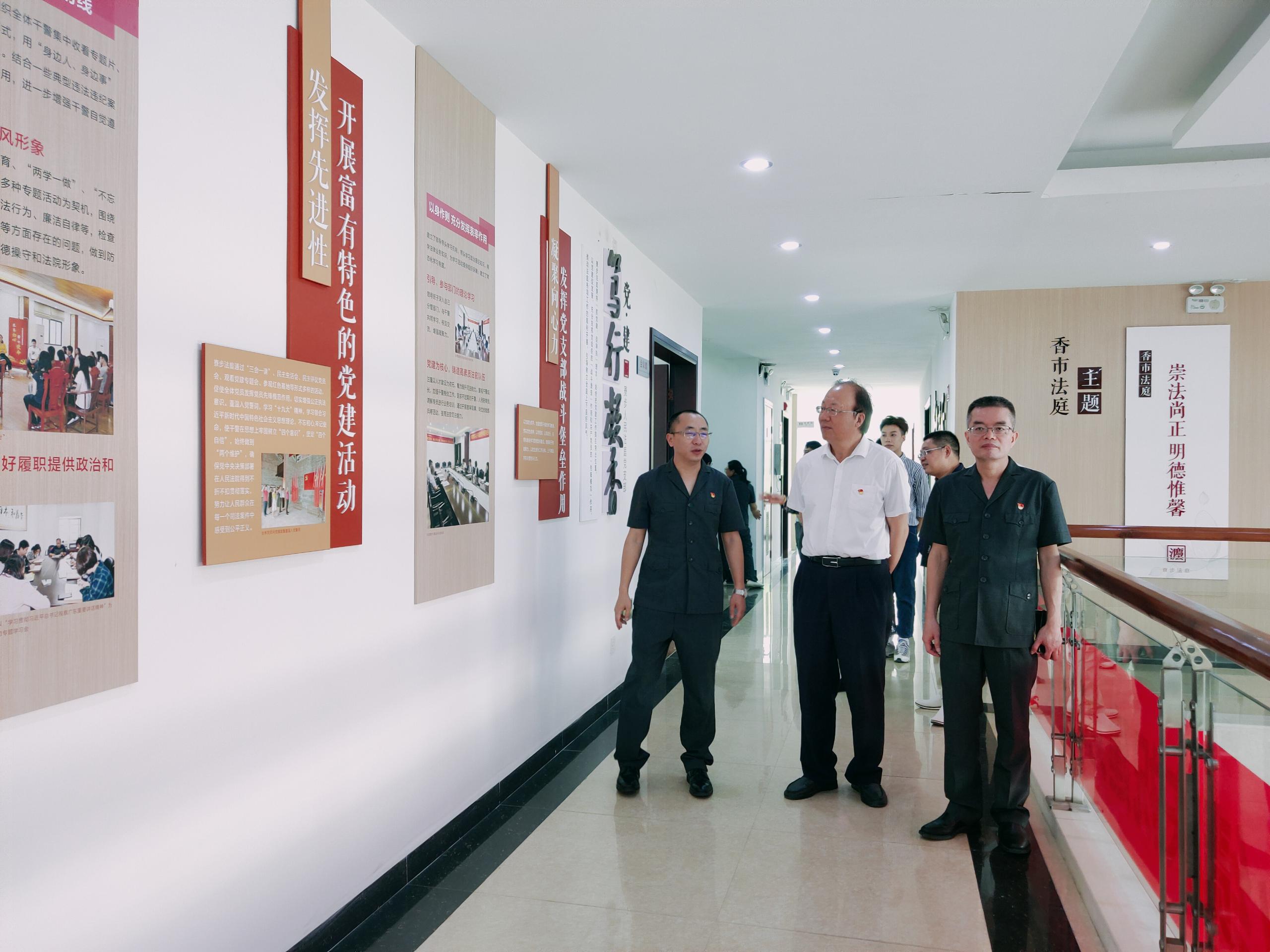 挂牌仪式结束,beat365官网一行还在梁聪副院长、林玉坤庭长的带领下,参观了寮步人民法庭党员活动室、图书室、审判室、调解室,了解到寮步镇人民法庭文化建设、党的建设取得的成果。在参观中,双方还就图书共享和beat365官网模拟法庭建设进行了探讨。