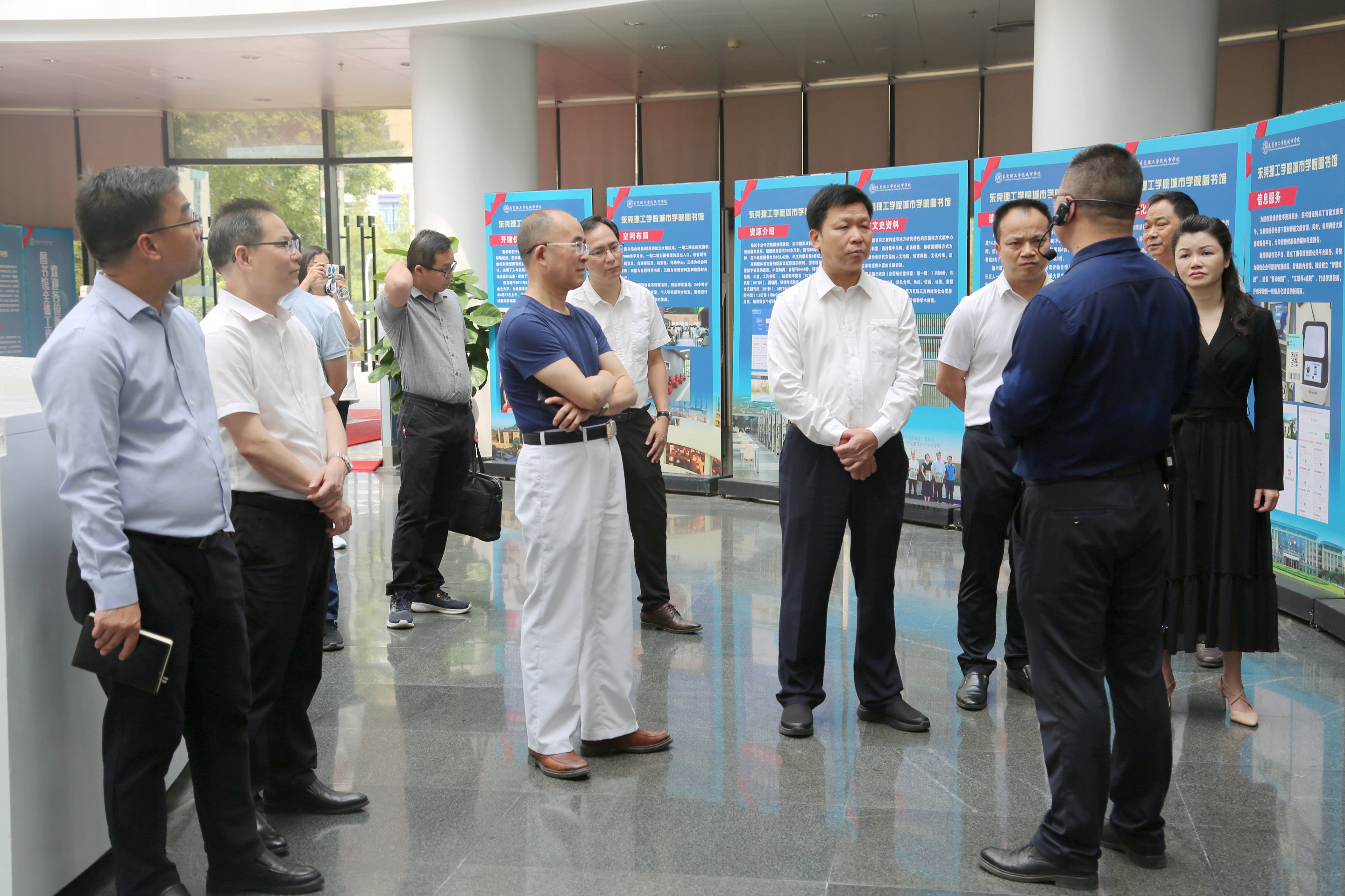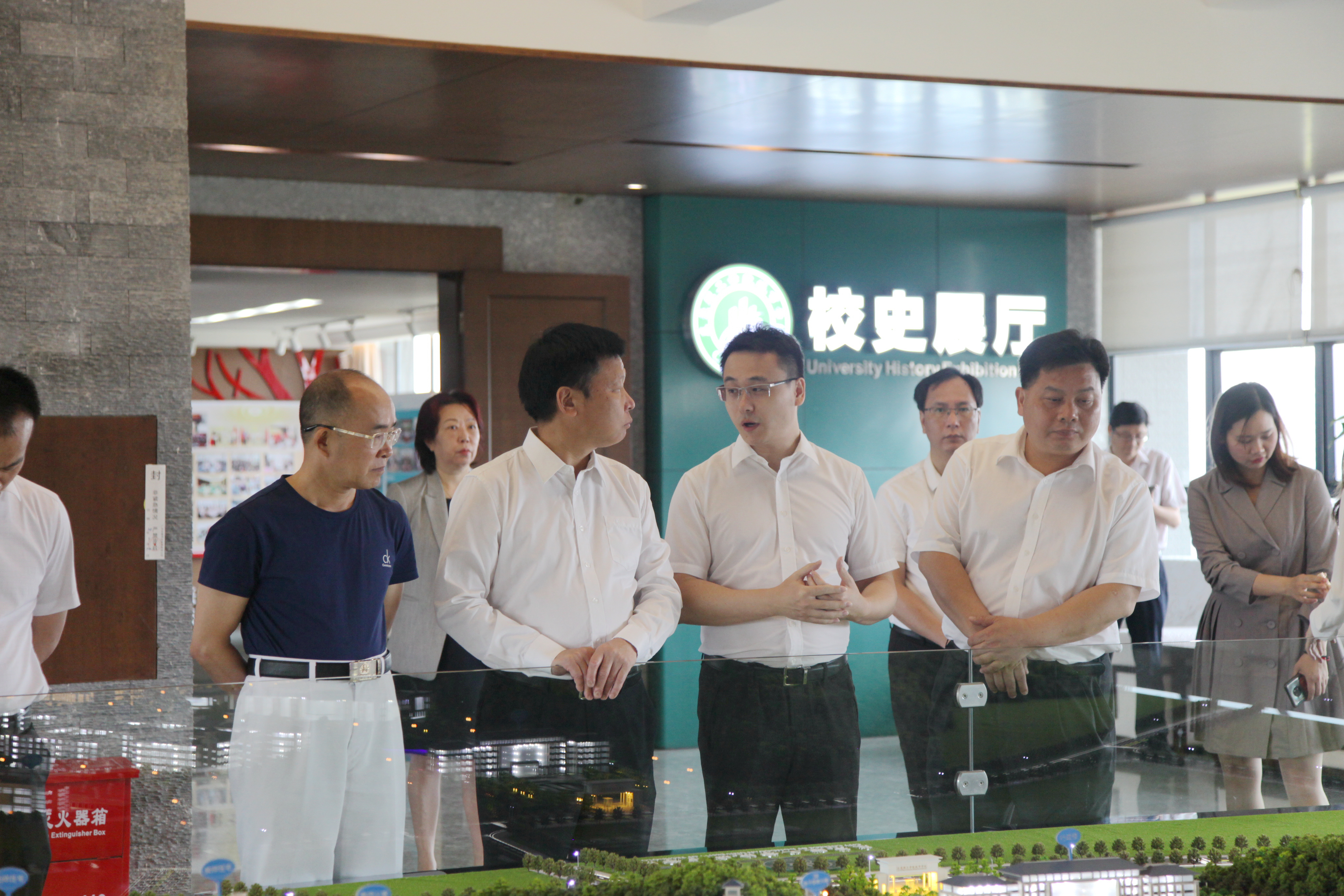 陈伟良书记一行在校长王卫平、董事长代表陈超群等领导陪同下,调研参观了学校沙盘,听取了学校规划、发展以及办学规模等方面的汇报并参观调研了学校的计算机与信息学院华为创新班、商学院商科实训中心、城环学院实训实验工程中心、智能制造学院智能制造中心及综合馆和图书馆等场地。