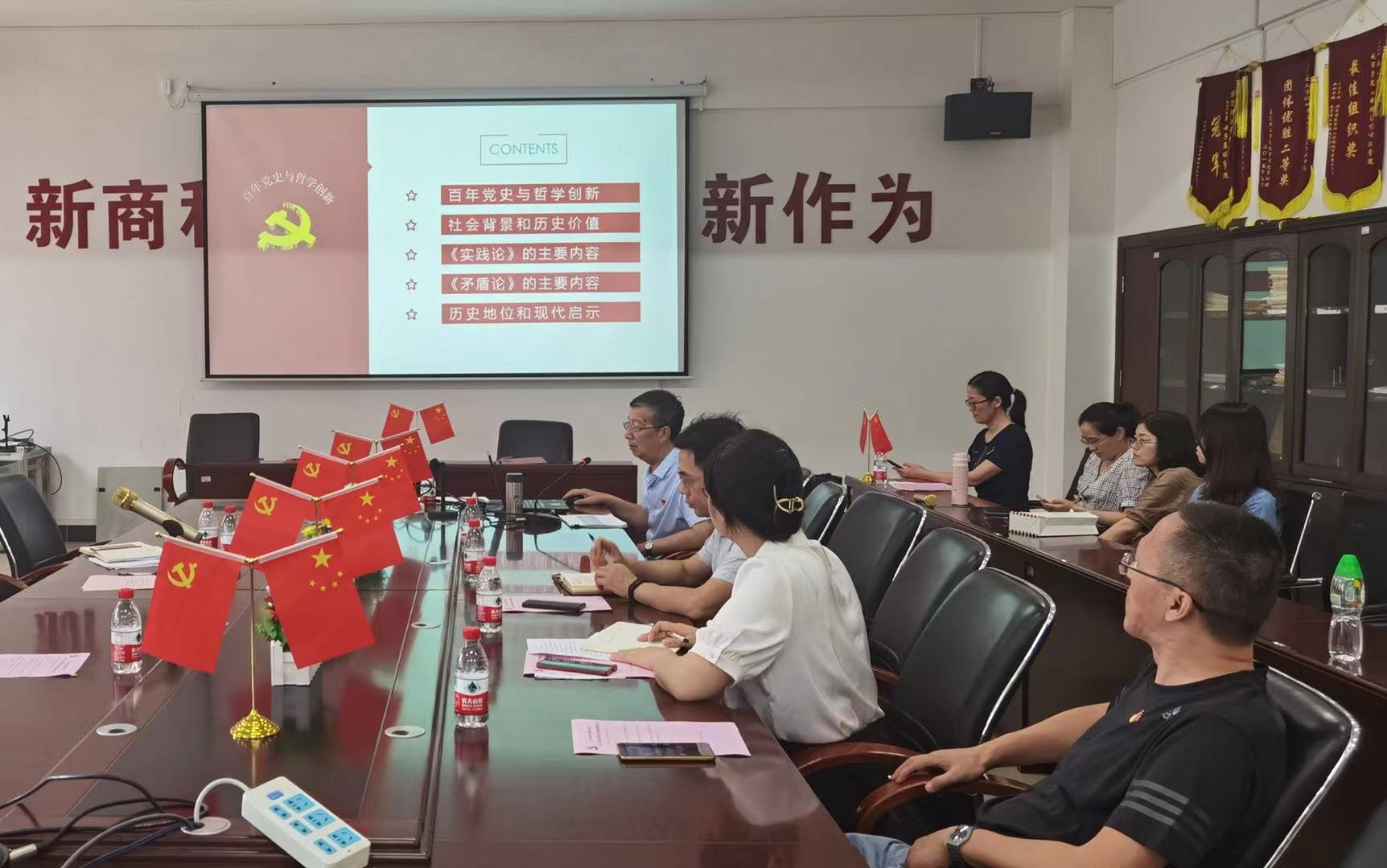5月20日下午在商学院5A220会议室,商学院教工党支部与机关二党支部开展以“中国共产党的哲学创新——以《实践论》与《矛盾论》为例”为主题的党课学习共建活动。商学院教工党支部与机关二党支部党员、流动党员共86人参加本次学习。党课由李红岩教授主讲。