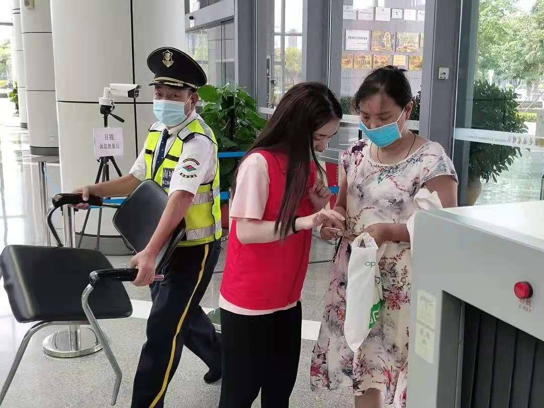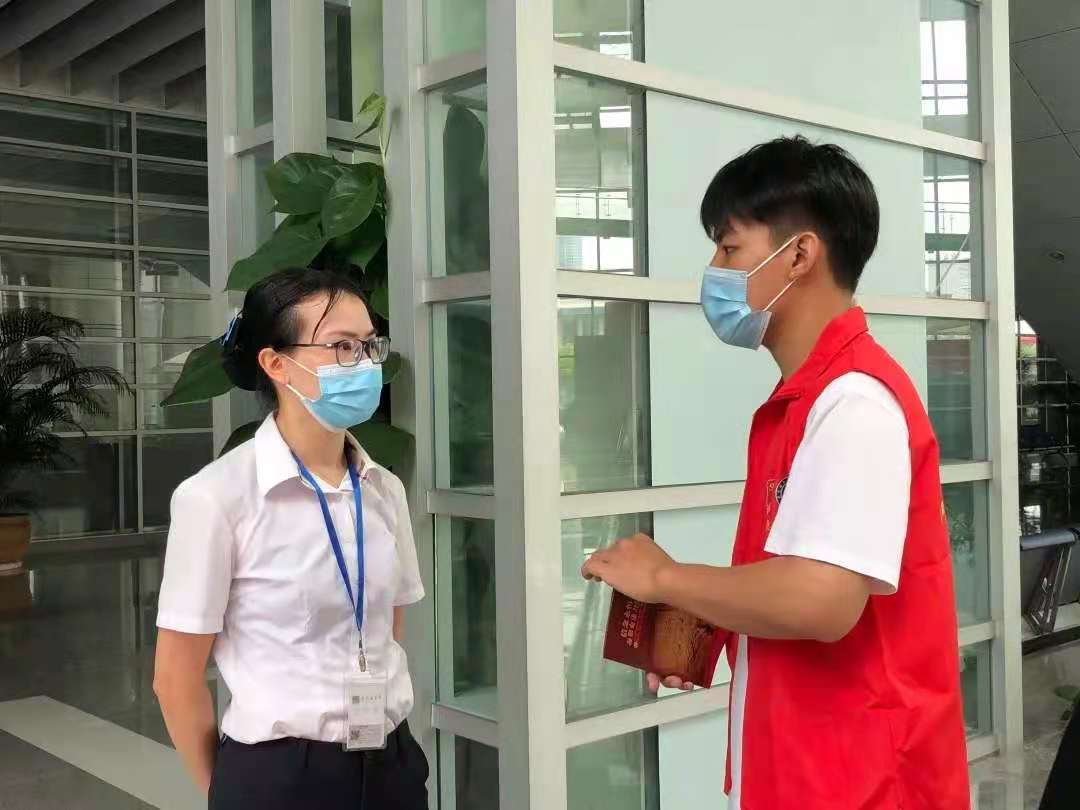 队伍分为三个小队在不同岗位进行志愿服务:一队是安保小分队,为来往的车辆、行人指引参观方向,协助做好车辆的来访登记;二队在展览馆门口为参观的群众进行粤康码和行程卡的健康登记,守好防疫的每一道关卡。三队在展厅协助各岗位工作人员,做好有关防疫相关措施。
