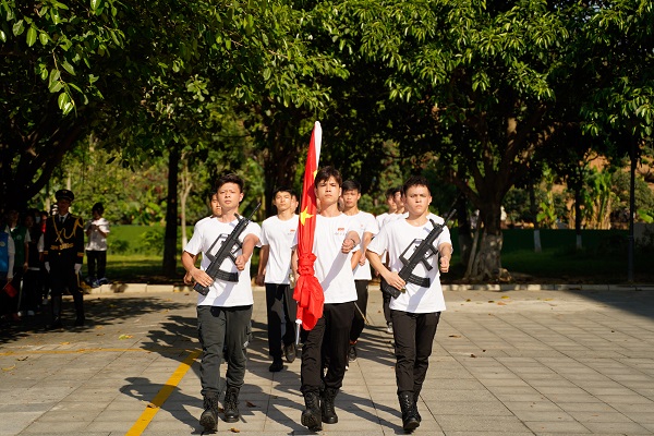 队员詹昆霖表示,很高兴能参加国旗护卫队,和着骄阳,大步向前,升旗,敬礼。经过一个月的训练,不畏艰难,不惧挑战。虽然训练过程很累,但是通过训练最终获得了较高的名次,训练流的汗水都是值得的了,智造冲冲冲。
